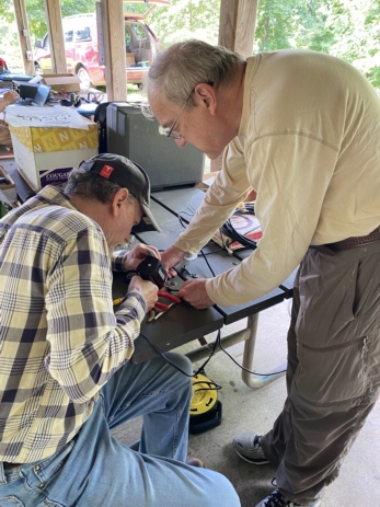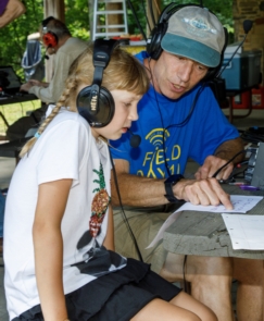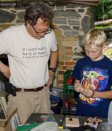 AJ1DM came prepared. He had the youngsters who happened along to our shelter construct code practice oscillators -- and then taught them to send their names, going back to the oldest technology. General Visitors